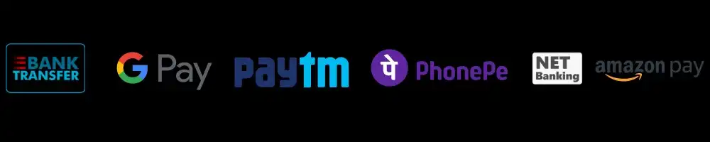 Multiple methods are available for Paymetns. Customer can pay via Net Banking, Bank Transfer, Paytm, Google pay, IMPS, PhonePe etc.
